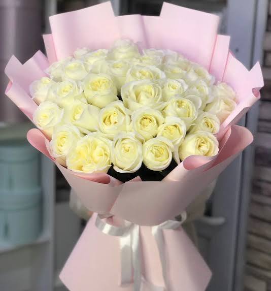 Прекрасный букет из 35 белых роз с доставкой по г Шиели: вы можете заказать букет в салоне цветов «Цветоландия» по цене за 28000 тенге.
